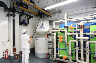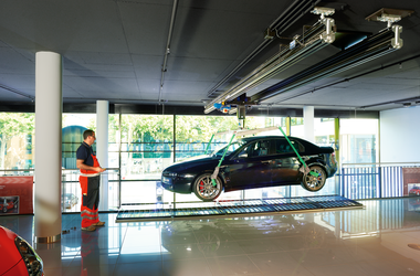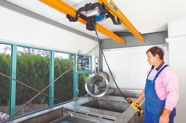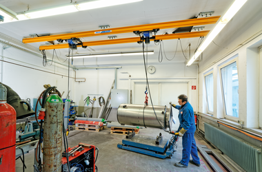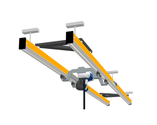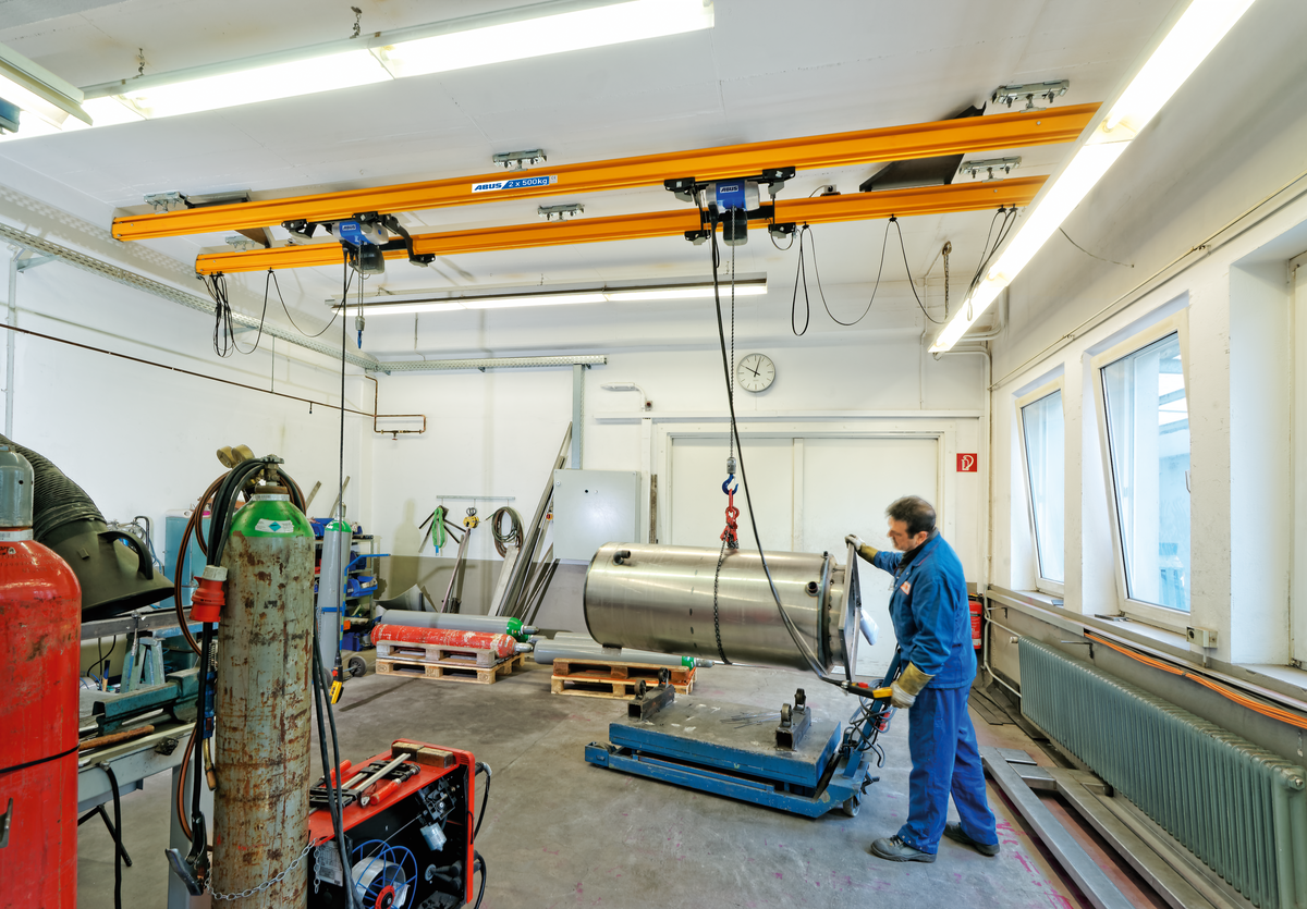 Vid ABUS dubbelbana hängs två kranbanor upp parallellt med varandra och kättingtelfern placeras mellan dem. Därigenom får man en bättre lastfördelning – belastningen på byggnadskonstruktionen minskar. Dessutom möjliggörs större upphängningsavstånd.