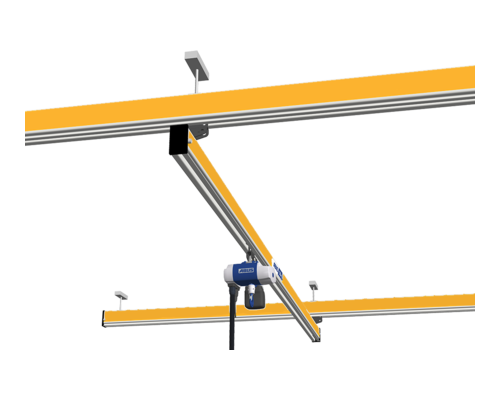 Den enkla konstruktionen med två skenor och en kranbalk gör att EHB har mycket låg vikt och enkelt kan förflyttas manuellt. Den kan dessutom installeras i hallar med lättviktskonstruktion och låg bärförmåga.