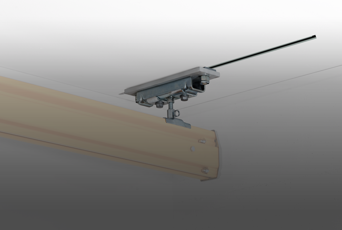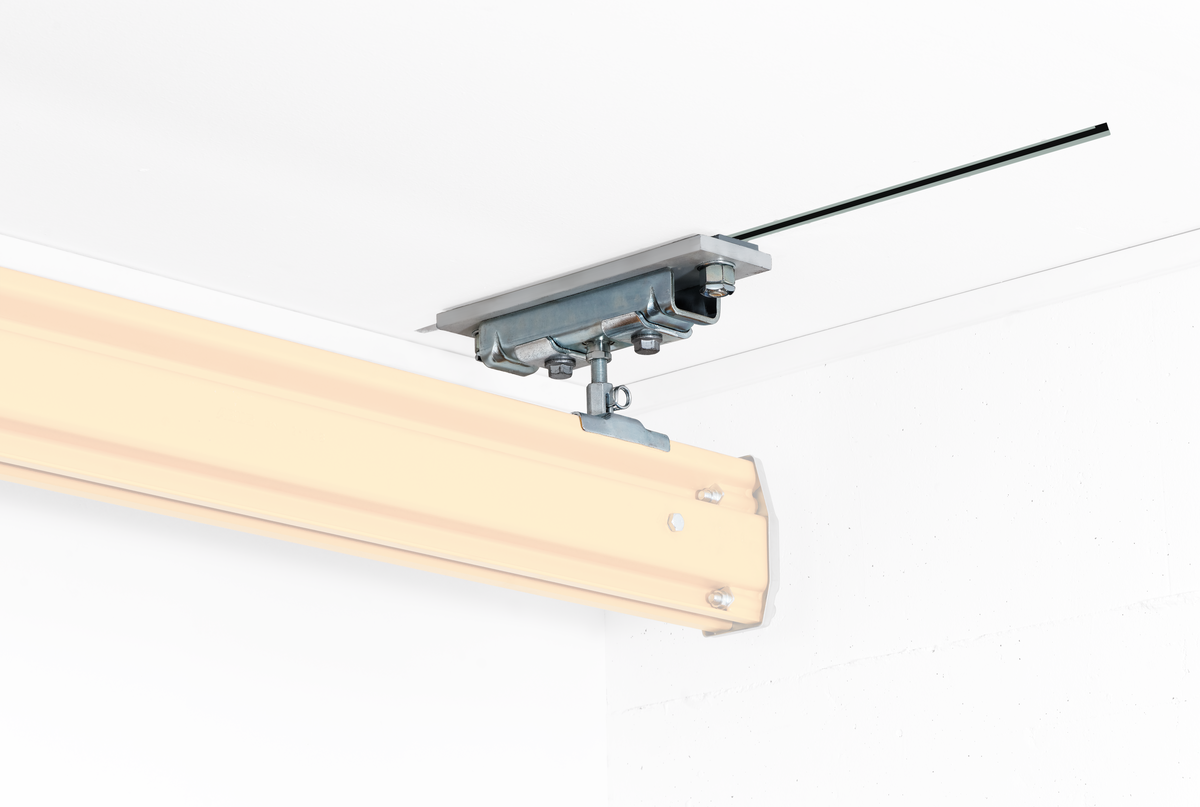 I sådana fall är Halfenskenor som är godkända för dynamiska belastningar helt rätt val. En mellanplatta fästs på Halfenskenan med speciella Halfenskruvar – ABUS-upphängningen fästs sedan i denna.