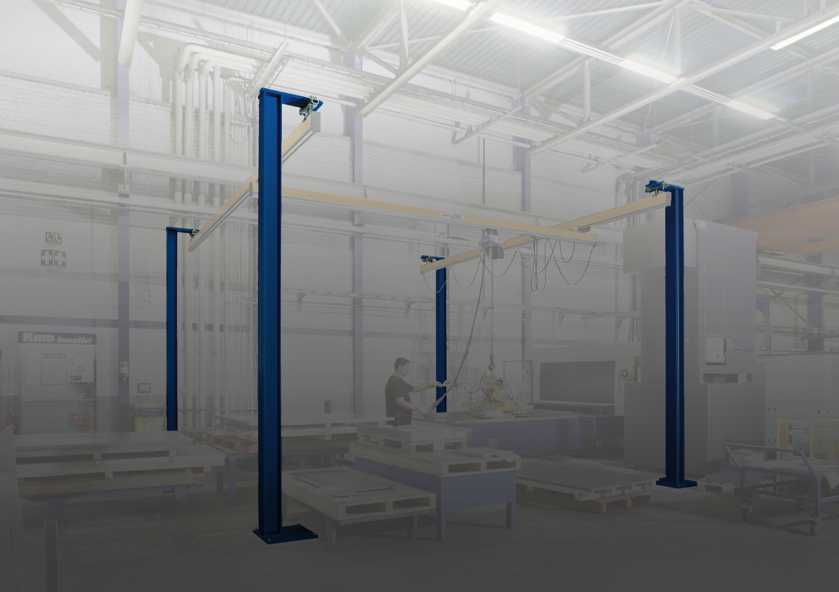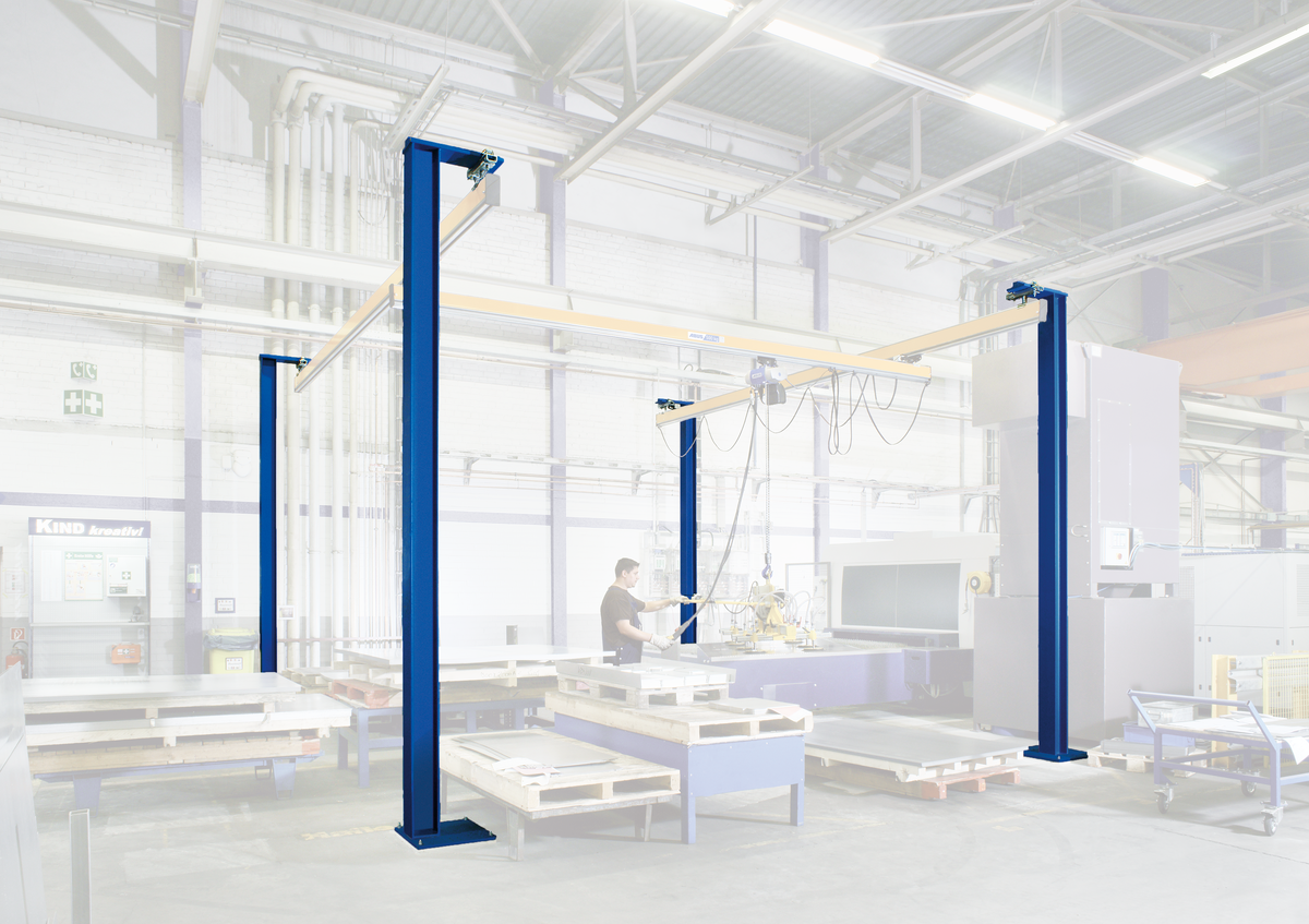 Då är ABUS stödpelare med konsol det mest kostnadseffektiva alternativet för montering på industrihallens golv. Injektionsankare från Fischer som utvecklats för dynamiska belastningar används för att fästa stödpelaren med konsol på golvet.