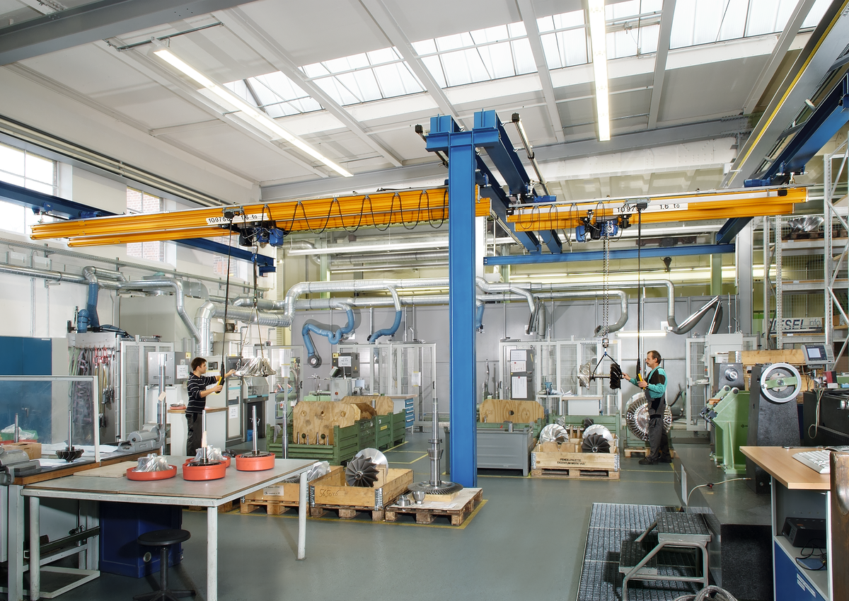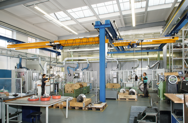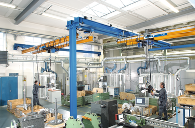 Vid behov är elektrisk förflyttning av kran och elektrisk kättingtelfer möjligt. En radiostyrning gör det möjligt för operatören att stå en bit ifrån kättingtelfern vid lasthanteringen.
