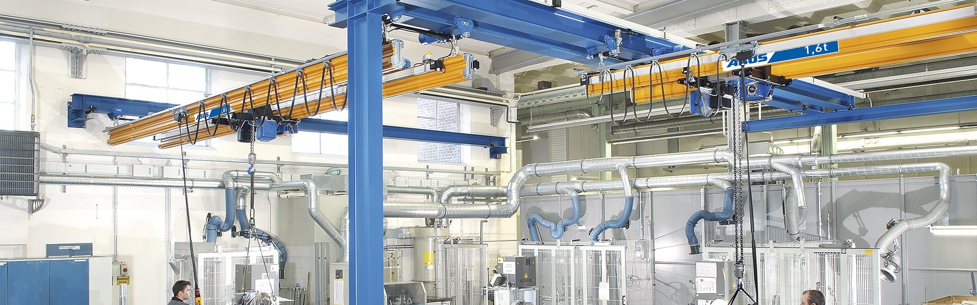 ABUS tvåbalkstravers ZHB-I är vår lösning för yttäckande transport av tung last. ZHB-I kännetecknas även av långa kranbalkar. Kranen förflyttar sig direkt på en kranbana av valsade profiler. ABUS-kättingtelfern hängs även här upp mellan kranbalkarna, vilket ger högre krokhöjd.