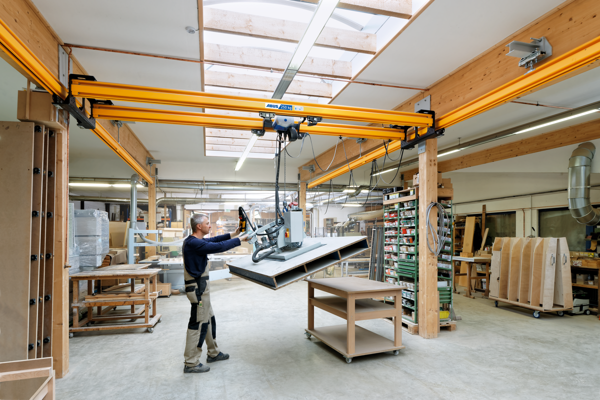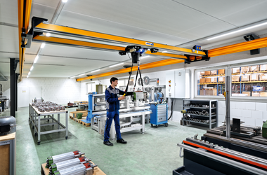 Hela kranen har alltså samma höjd som en enskild profil. På så sätt får man optimal lyfthöjd, som t.ex. även höga maskiner inom transportområdet klarar.