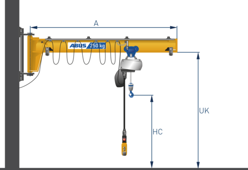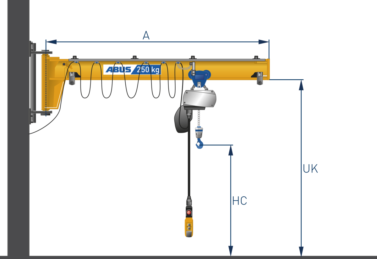 Svängkran i pelar- eller väggutförande. Kättingtelfer upp till 4,0 t. eller lintelfer upp till 6,3 t.
