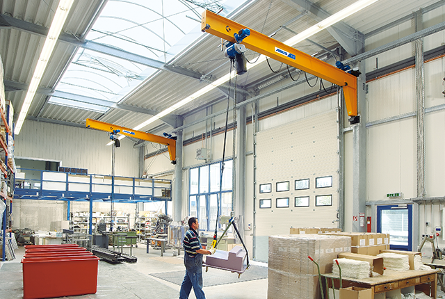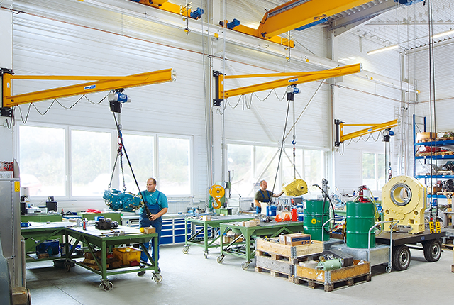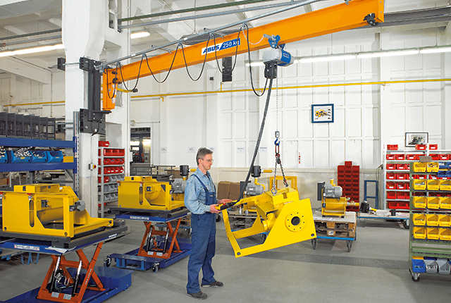 En svängkran är ett effektivt hjälpmedel som underlättar lyftarbetet, ökar produktiviteten och höjer säkerheten. ABUS svängkranar finns i två modeller för montering på vägg eller på en fristående pelare. En väggsvängkran har en lyftkapacitet från mindre lyft på 80 kg och klarar laster upp till 5 ton medan en pelarsvängkran klarar upp till 6,3 ton.