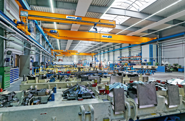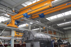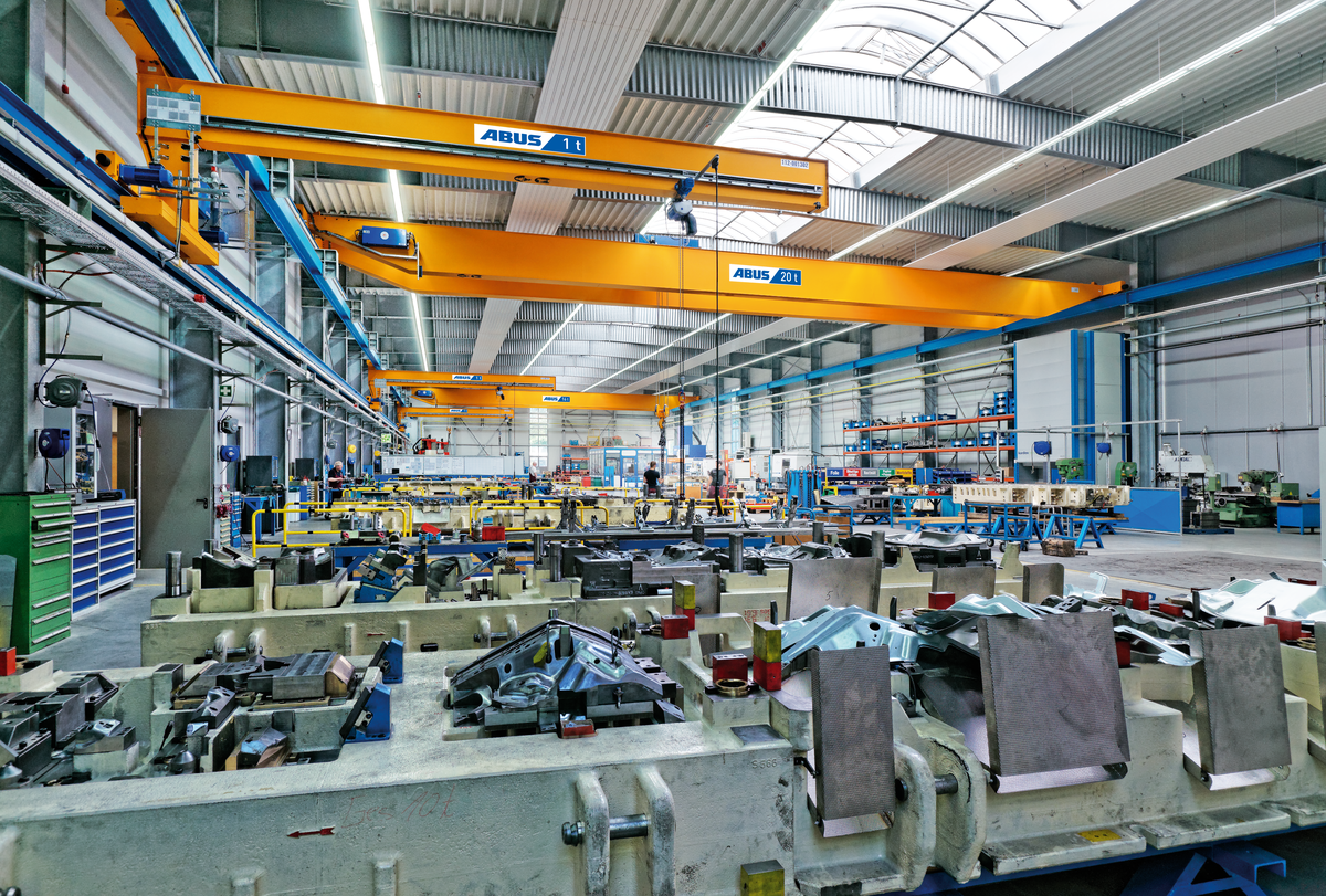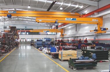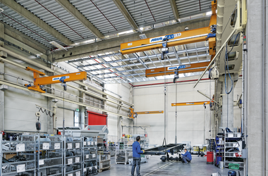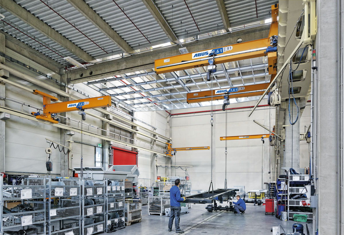 ABUS enbalks konsoltraverskran förflyttar sig på en egen nivå, under de större traverskranarna. Därigenom blir det möjligt att transportera last inom enskilda produtionsområden - oberoende av den överordnade traverskranen.