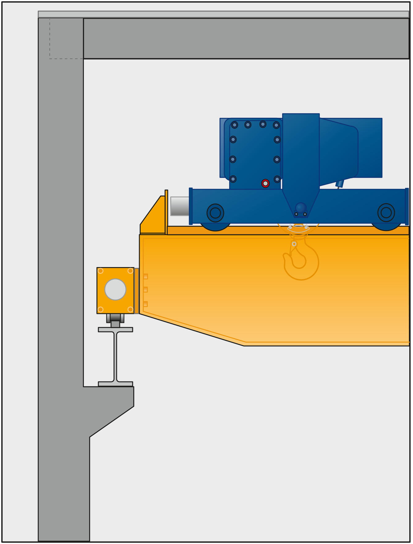 ABUS tillbehörsprogram erbjuder dessutom ett stort antal specialutrustningar för särskilda lösningar. ABUS tvåbalkstravers erhålls i utförandet ZLK med svetsad lådbalk. Alla profiler på huvud- och åkverksbalkarna är datoroptimerade och förenar maximal prestanda med låg egenvikt. Det här ger både ekonomiska och statiska fördelar.