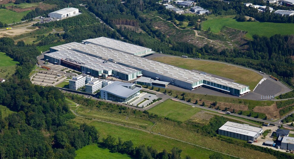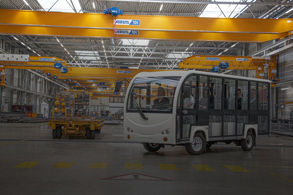 Besökare på en fabriksrundtur får uppleva produktionen i Gummersbach-Herreshagen från en golfbil.Besökare på en fabriksrundtur får uppleva produktionen i Gummersbach-Herreshagen från en golfbil.