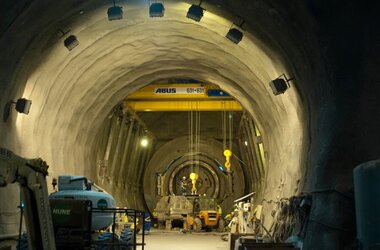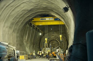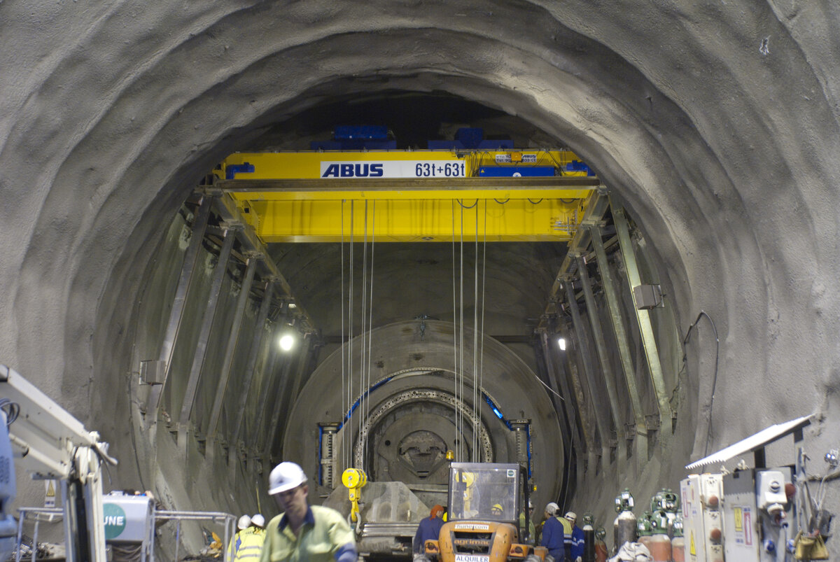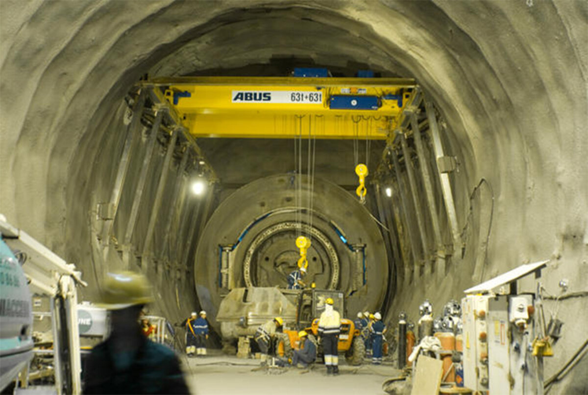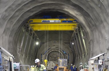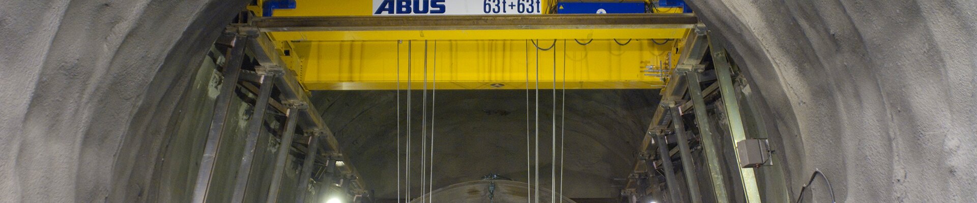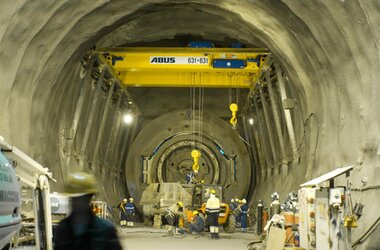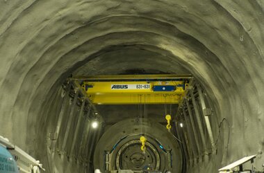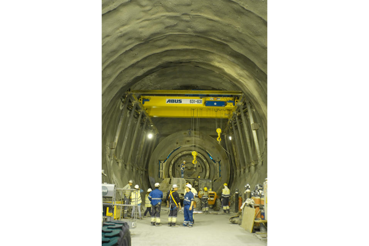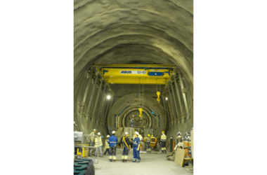 The building of this tunnel also resulted in a very unusual and quite challenging task for ABUS Grúas (www.abusgruas.es), the Spanish daughter company of the German crane and hoist manufacturer ABUS Kransysteme GmbH. Normally EOT cranes would be employed in the production process to swiftly dispatch finished goods. In this case, however, ABUS Grúas worked very closely together with the construction company to help with the dismantling of the tunnel boring machine once the work was done. ABUS Grúas based itself on a plan drawn up by the construction company which was to ensure much safer and quicker dismantling than previously carried out. This plan was put into practice based on the proposal by the construction company and the technical detailing carried out by ABUS Grúas. An ABUS EOT crane with very compact dimensions was used.