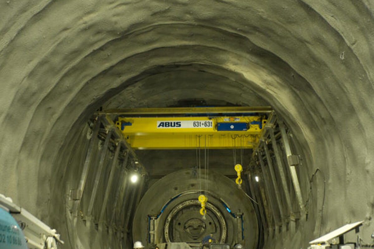 The tunnel boring machine was dismantled much quicker than expected thanks to the uncomplicated and fast way of assembling and disassembling the ABUS EOT crane as well as the ease of handling the crane. The perfect teamwork of the high-performance Herrenknecht tunnel boring machine and the ABUS Grúas offer which proved to be reliable and precise in all areas allowed the tunnel to be completed ahead of schedule.