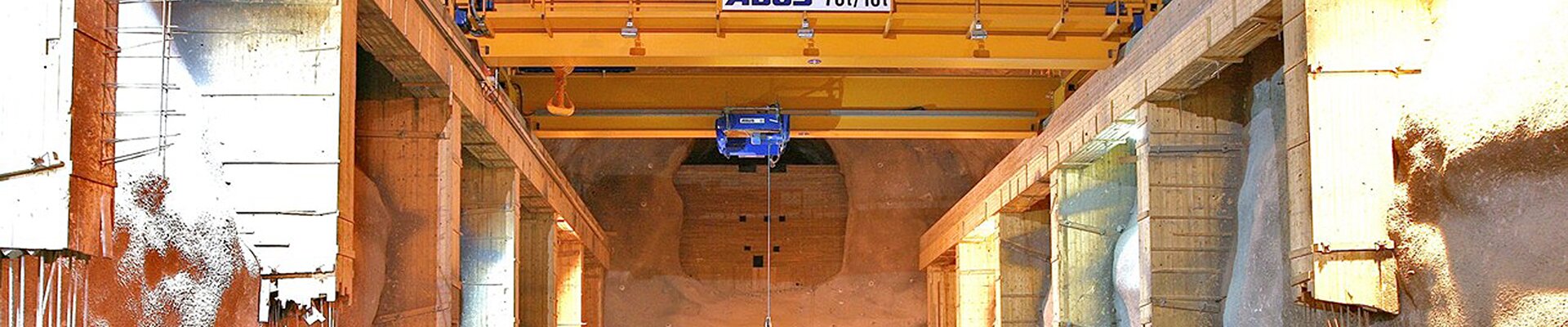 employed in the machinery hall had already an important task to fulfil in the first construction phase of the power plant: materials and machines such as the concrete elements for the base of the turbine were transported on the 75 metres long crane track to the building site. The EOT crane is a double girder crane type ZLK, box girder design, SWL 75 tonnes, with a span of 12.5 metres. The crane features a double rail trolley with twin hoist and an additional wire rope hoist (load capacity 10 tonnes) acting as auxiliary hoist. The crane comes also with a walkway and crane lights. Getting the crane to the site was a particular challenge: The crane was shipped to the nearest harbour and then transported on small country roads as soon as the weather permitted to do so. The crane will have to carry out its most ambitious task in 2014 when the construction works are finished and the turbine is put into place. In order to accomplish this sensitive transport task the crane has been provided with radio remote control and an ABULiner frequency converter for crane and trolley travelling. After that the crane will only be used for maintenance works of the turbine.