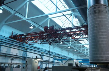 Not only the production plants date from 1920—the lifting and transportation system had also seen more than half a century go by. Several cranes were from the 1950ies and one self-built crane even dated from 1925! Overhauling and modernising cranes is well possible depending on the technical requirements and the conditions of the main girders and the hoists but in this case the Nohab’s management decided to completely replace the old crane system. A special challenge was for the installation team to get the old cranes off because of the huge weights of the hoists on framework constructions. The old cranes were then taken off the crane tracks by an experienced team once an extensive preliminary examination of the site conditions had taken place and an analysis of the dismantling conditions had been carried out. It had been possible to conserve the existing crane tracks which were now ready for the new cranes to be installed.