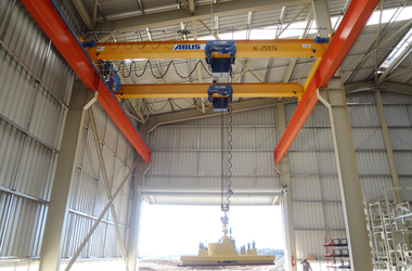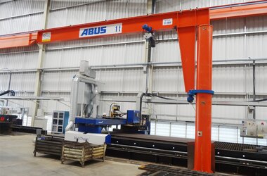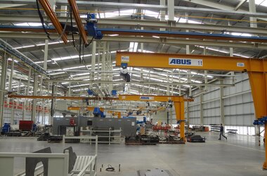 Bruning is using state-of-the-art technology in the new plant that has 15,200 square metres of production surface: from a welding robot to machining centres and even to a plasma cutter. The ABUS cranes, too, are subject to high requirements. According to Mr Elton Nunes, responsible for the construction of the new plant, 5,000 tonnes of loads are moved on average per month. More than 250 ABUS crane systems are used to transport raw materials such as steel plates, punching and stamping tools, packaging, components for the production processes, tools in the process of being built or being serviced, and welding templates to their respective destinations across a total production surface exceeding 110,000 square metres. All of ABUS products have a role to play: EOT cranes transport the more important loads, jib cranes are primarily used as work station cranes, and the suspended rail systems optimise the material flow of less heavy loads. Each crane system is the result of intense technical assistance by Eidt-Ciriex always aiming for best ratio of cost to benefit. Eidt-Ciriex mentioned one crane system needed for the transport of steel plates of a length of six metres. The customer specified an EOT crane with two suspension points. The solution offered by Eidt-Ciriex consisted in a double girder EOT crane with two wire rope hoists (with load capacities of 6.3 tonnes each). The operation of the hoists is synchronised by a synchronisation control system. The crane can thus be operated with both hoists simultaneously or just with one hoist depending on the application which makes for a very flexible crane system. The ABUS supply is rounded off by services such as maintenance.