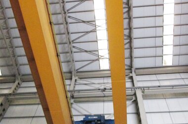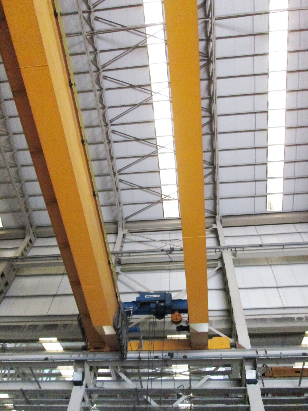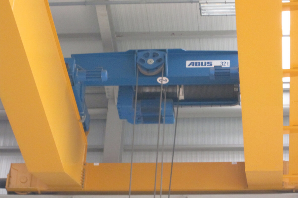 The crane components have been supplied by ABUS from Germany in the form of crane kits, i.e. complete cranes minus the main girders, and shipped to Turkey. In Turkey Ege Makina has supervised the fitting of these kits onto the locally produced main girders. Ege Makina then carried out the mounting and commissioning of these cranes in the buildings of Sanmar.