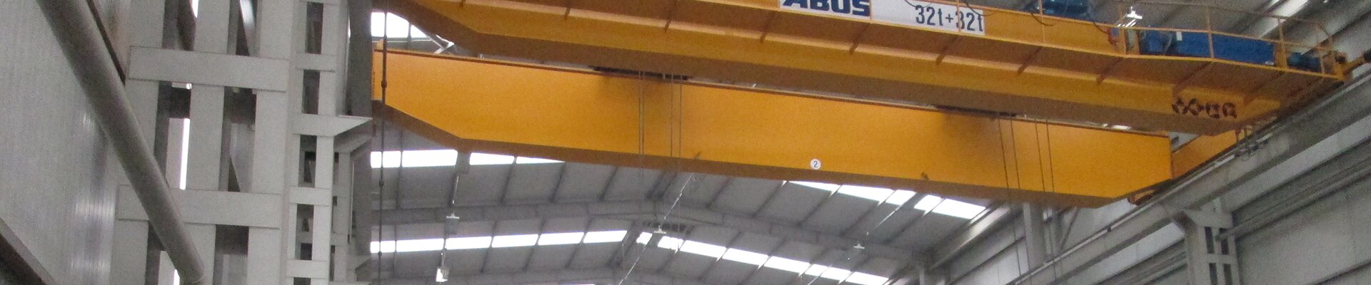 4 ABUS double girder EOT cranes with a load capacity of twice 32 tonnes and spans of 17 metres featuring 2 double rail trolleys GM7000, wire rope hoists of the D type with an increased lifting speed in this case.