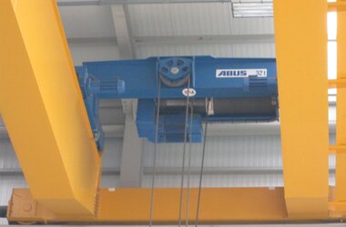 3 ABUS double girder EOT cranes with twice 16 tonnes load capacity and spans of 30 metres. The wire rope hoists used are GM5000 and type D.