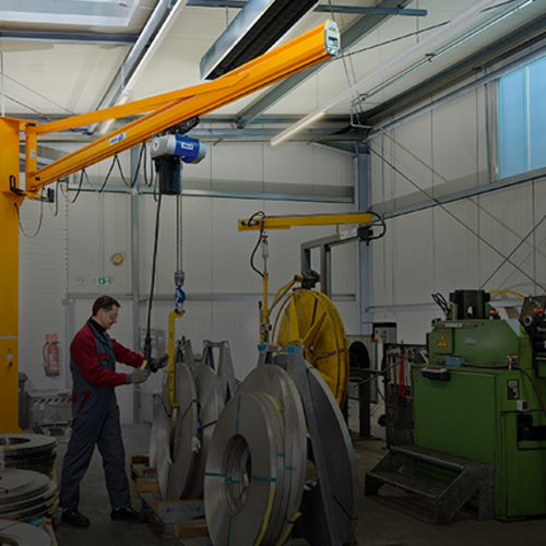 After Noremat had started to enter the Latin American market they saw an increase in activities which led them to buy new machinery. In November 2013 they ordered more cranes from ABUS. ABUS Levage France installed 4 wall jib cranes LW with 500 kg SWL and reaches of 5 metres, one pillar jib crane VS also with 500 kg SWL and a reach of 6 metres, one EOT crane ELV with 1.6 tonnes load capacity and a span of 7 metres, a steel structure and a runway. The standard wall jib cranes are mounted on reinforced posts.