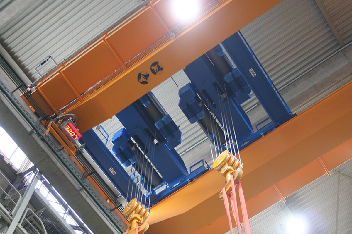 ABUS double girder crane ZLK with two hoists at pump manufacturer KSB