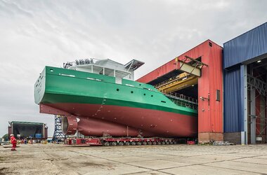 Royal Bodewes (www.royalbodewes.com) is a shipyard in Hoogezand in the northeast of the Netherlands that has been in existence since 1812. Well over 200 years of tradition and experience are reflected in the construction and delivery of modern boats of highest quality which this family-run business is renowned for. A new production hall was commissioned recently by Royal Bodewes at their headquarters at Hoogezand. Optimised internal logistics in combination with state-of-the-art machinery are to bring about even more efficient production as well as significant production increase. Cranes are a main ingredient in this process of efficiency increase. Longstanding cooperation was the decisive factor in equipping the new production building with ABUS cranes. ABUS supplied cranes for the old production plant as long ago as 1977.