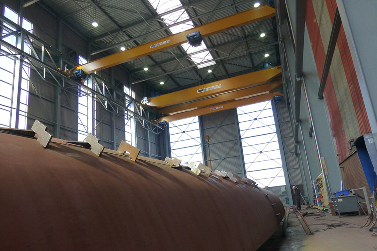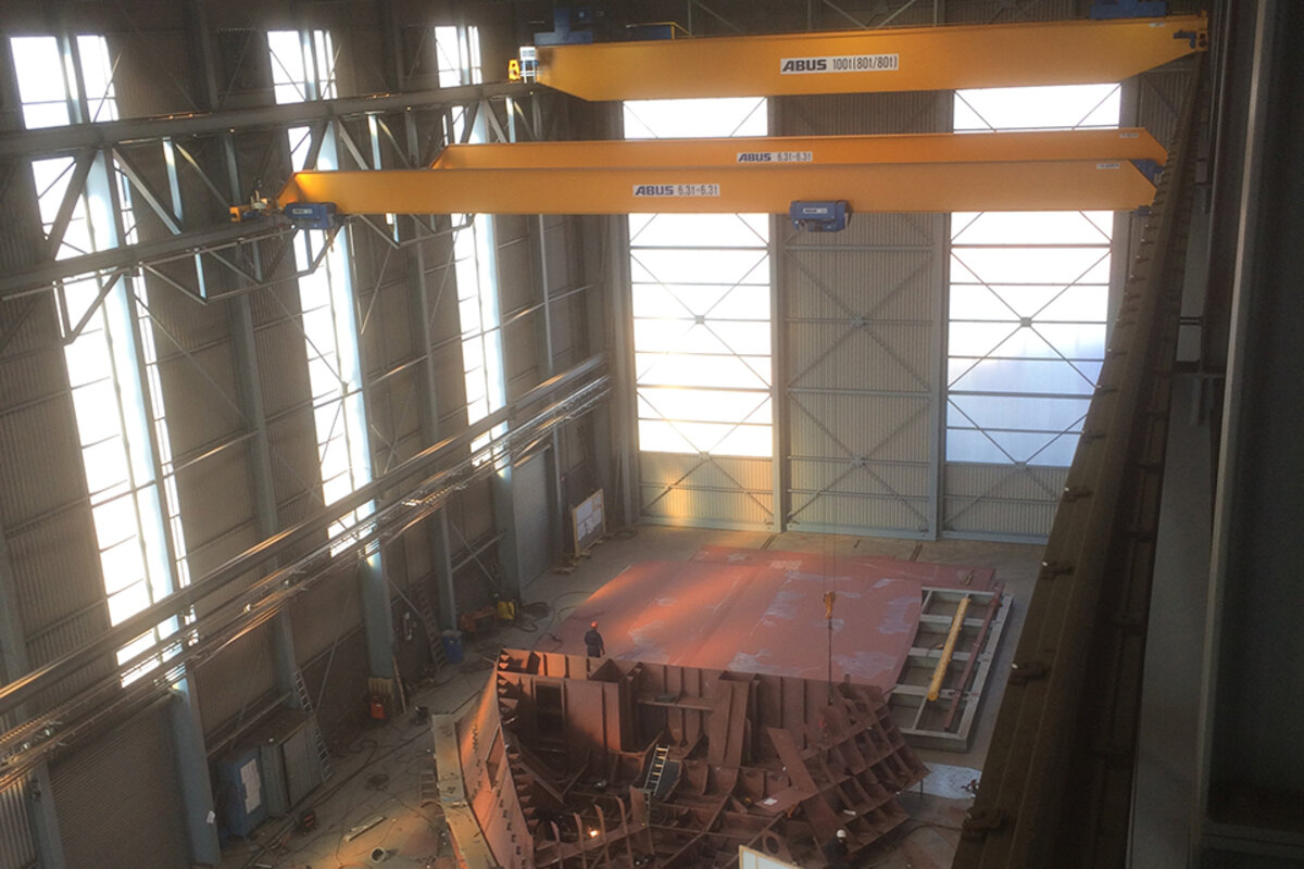 ABUS EOT cranes make the production flow efficiently in a Dutch shipyard