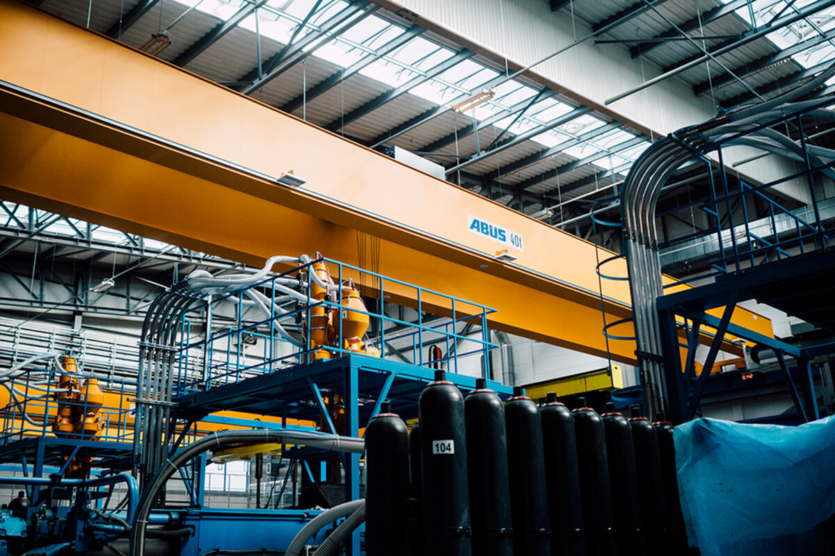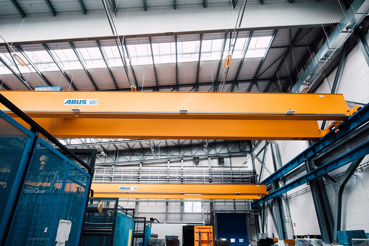 ABUS technology had been used in the production of Jelenia Plast even before the new order was placed. Jelenia Plast put particular emphasis on the reliability of hoists and thus decided to buy ABUS EOT cranes for this new investment. The newly built production plant saw three double girder EOT cranes installed: two cranes with load capacities of 10 tonnes and a further crane with 40 tonnes SWL. All three cranes share relatively large spans of 36 metres.