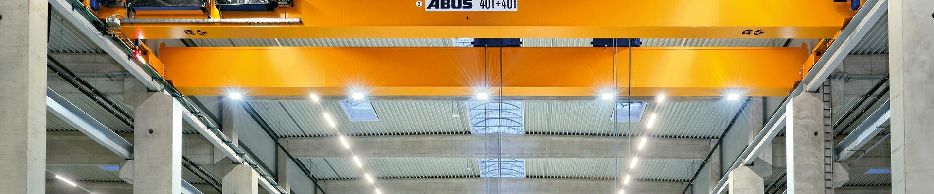 ABUS EOT cranes for multipurpose logistics building handling heavy goods