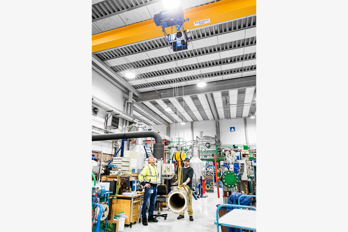 The research institutes RISE have been regular ABUS customers of the company JJ-Gruppen (www.jjgruppen.se) since the eighties starting with service and maintenance contracts at the time. Through the years several old cranes of different brands have been replaced by new ABUS cranes. The latest crane was supplied in December 2017: a single girder EOT crane of the ELV type with a safe working load of 5 tonnes and a span of 11,100 mm. Now this crane with a main girder consisting of a sturdy rolled section girder is one of the most commonly used cranes for industrial applications. And yet this crane is a special one: it is the first EOT crane in Sweden fitted with the new crane control ABUControl and with a modular wire rope hoist GM1000m.