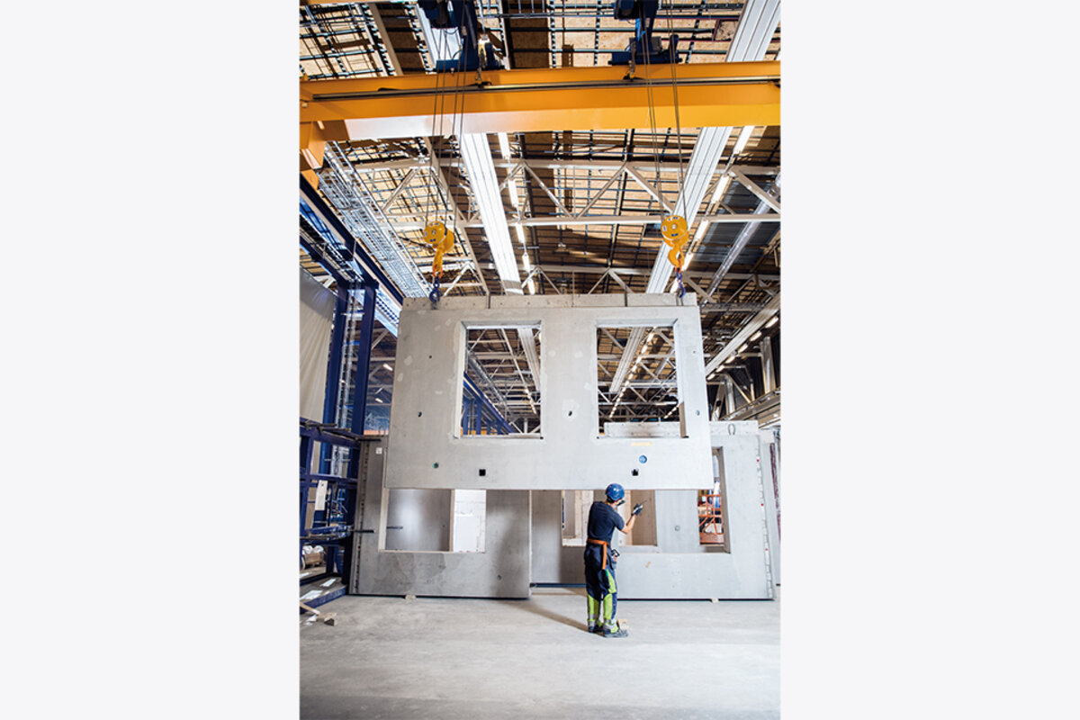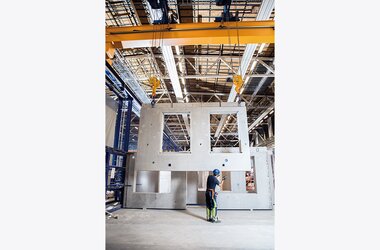 Numerous components are built in large series. High rise buildings for example are designed to have similar or identical walls on each floor. Oftentimes there is only a small time window of about half an hour for precast concrete elements to be delivered to the building site. Therefore it is not only the swift and smooth transport of concrete parts to the customer that is a challenge for Benders but also the factory side transport and loading onto lorries that has to be carried out in a fast and save way.