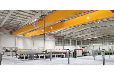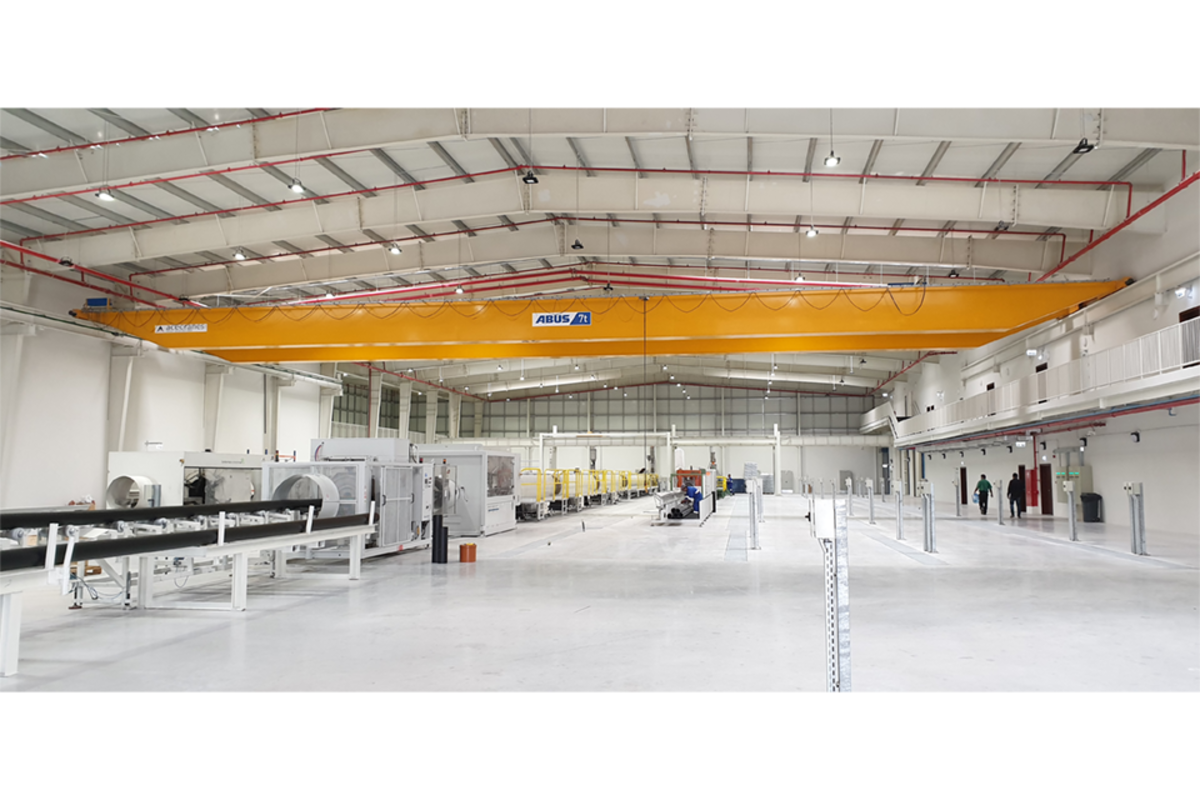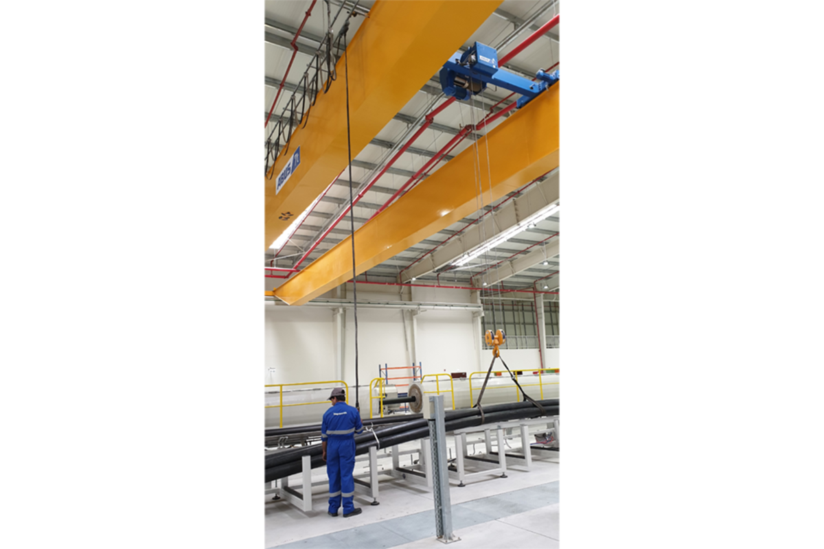 The crane has a lifting height of 7.5 metres and is used to transport bundles of plastic pipes, six and twelve metres long, over a length of 70 metres across the plant. The EOT crane is also employed to carry out regular maintenance work on machinery used to produce the piping systems. More machinery is slated to be added so that larger dimensioned plastic pipes can be produced in the future.
