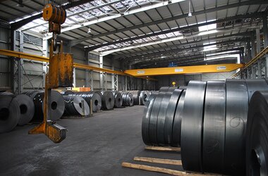 The two biggest cranes of the lot, two double girder cranes of the ZLK type, with SWLs of 25 tonnes and spans of 25 metres and 32 tonnes and 23 metres respectively are operating in the area of coil handling. Double girder cranes with load capacities of 40 tonnes may reach spans of up to 40 metres. Different designs for the main girder installations for both single and double girder cranes allow the cranes to be optimally adapted to the building shapes and conditions.