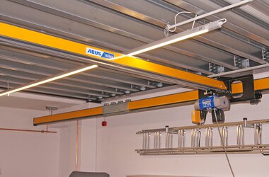 Theoretical and practical crane uses go hand in hand in the Institute for Technical Logistics. Teachers and students use the ABUS crane technology in a practical way when safely assembling or modifying their experimental arrangements. The theoretical part involves correlating different components from mechanics, electronics and informatics including the crane systems while working out technical solutions in logistics.