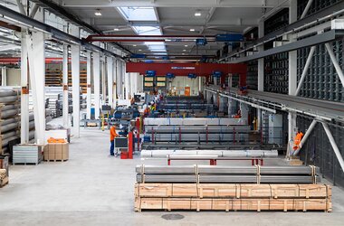 HANS KOHLER AG had already installed three EOT cranes in 2012. The company Brun Marti Dytan AG (www.brunmartidytan.ch), the ABUS partner for Switzerland and Liechtenstein, assisted Kohler with consultation, sale, assembly and commissioning of these cranes. Good experience with the material handling solution and the products offered by Brun Marti Dytan made HANS KOHLER AG choose ABUS cranes for their new project as well. A total of 16 crane systems are now in operation in different areas in order to ensure the stainless steel is going full cycle—right from pipe coils coming in on lorries until the finished products such as sawn and machined long goods, pipes and bar stock are ready to be shipped out again. Different single girder EOT cranes with SWLs between 1 and 6.3 tonnes and spans between 12,155 and 22,590 mm are used depending on location and use in the plant that is 120 metres long. The hook paths of these cranes have been designed to reach up to 6,000 mm.