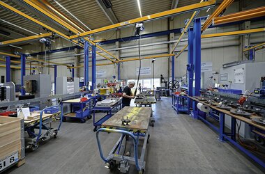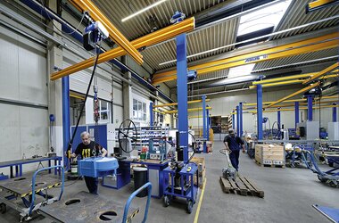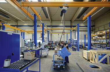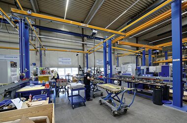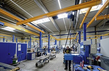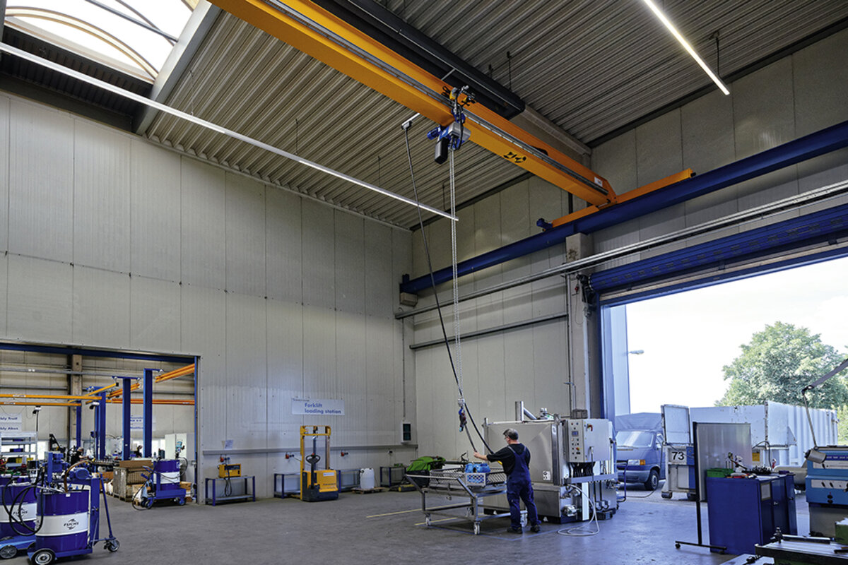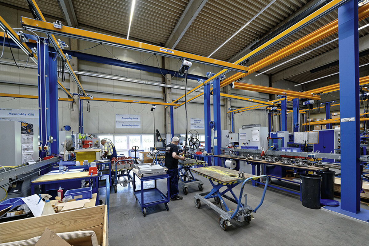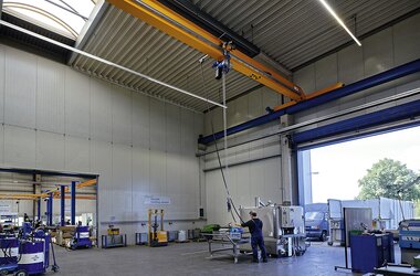 Well placed for the future: The desired flexibility of the workplace related lifting technology is guaranteed even when Premium Stephan continues to grow as the modular HB system makes it possible to expand or convert the crane system at any time.