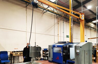 "... the increased comfort and safety offered by the jib cranes, the ease of use and the tremendous smoothness of manual trolleying and slewing. Two-speed lifting provides the combination of speed and precision required for daily tasks in the workplace."