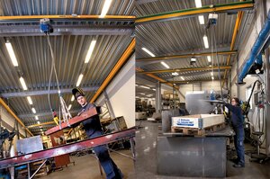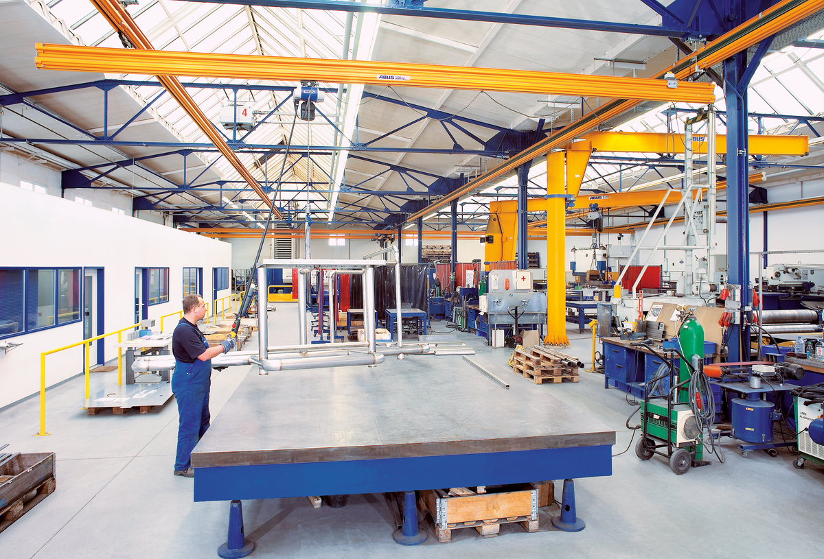 Med den uppfällbara och 90° vridbara upphängningsbygeln kan ABUCompact GM2 enkelt fästas stationärt eller köras med ett manuellt eller elektriskt åkverk.