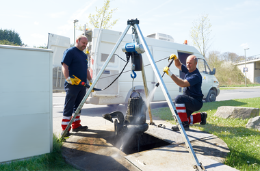 Med den uppfällbara upphängningsbygeln kan ABUCompact GMC enkelt fästas stationärt, eller köras med ett manuellt åkverk.