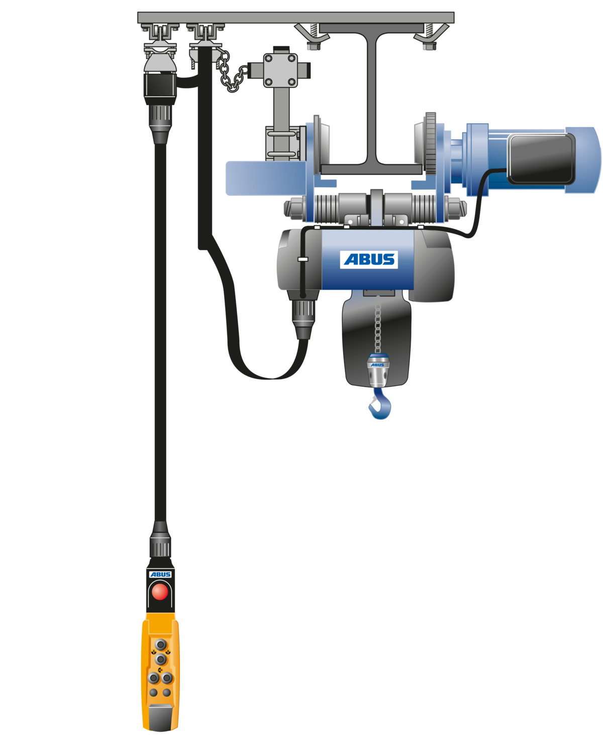 - Kan manövreras via hängmanöverdon oberoende av lyftanordningens läge – istället för standardutförandet med nedhängande hängmanöverdon som är kopplat direkt till kättingtelfern.