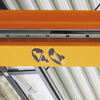 Därför ingår riktningsmärkena hos ABUS i standardleveransen för traverskranar och fästs på undersidan av kranen med hjälp av magneter.
