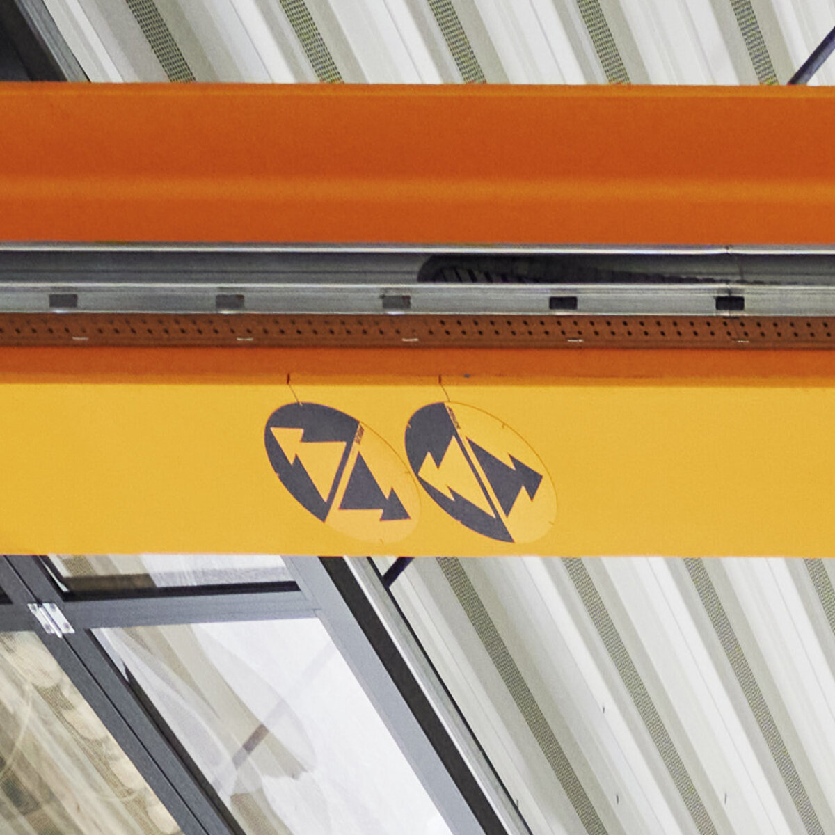 Säkerhet vid manövrering av kranen är av största vikt. ABUS använder riktningsmärken så att kranens färdriktning alltid syns tydligt.
