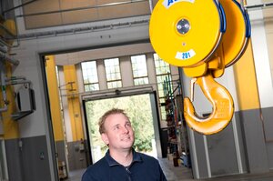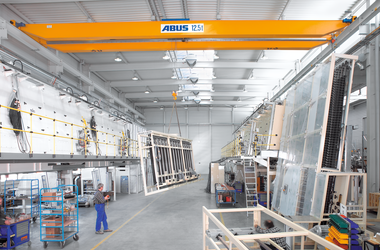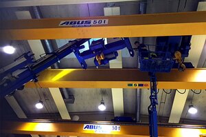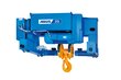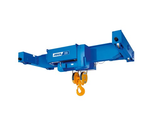 Till skillnad från modell D är tvärbalken med lyftverk här ansluten till åkverksbalkarna med en ledad anslutning. På så sätt får man en minimal bygghöjd för telfern - modellen lämpar sig för begränsade utrymmen uppåt och kan användas som alternativ till den nedsänkta modellen DQA.